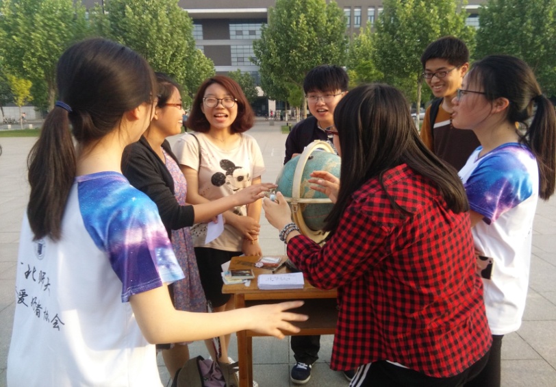 此次活动推出了一系列集智慧与趣味于一体的系列科普项目,处处体现出主办社团的创意。此次活动共分为天球趣闻、前世今生、三行情书、故事接龙、天文三关、一箭穿星、墨影留迹七个模块。七个模块举办的地点排成北斗七星的形状,恰好契合活动主题。同学们对于这次的活动充满了好奇,每个板块前面都排满了人,大家都尽情地享受着这个美好的时刻。现场观测活动更是受到了同学们的青睐,小小的镜筒向同学们展示着美丽的宇宙,太阳黑子、木星等天文现象都深深吸引着大家。有同学评价说:“这样的活动虽然知识性比加强,但是通过闯关形式让同学们参与进来,有很大的趣味性,还能吸引来自不同学院的同学。”